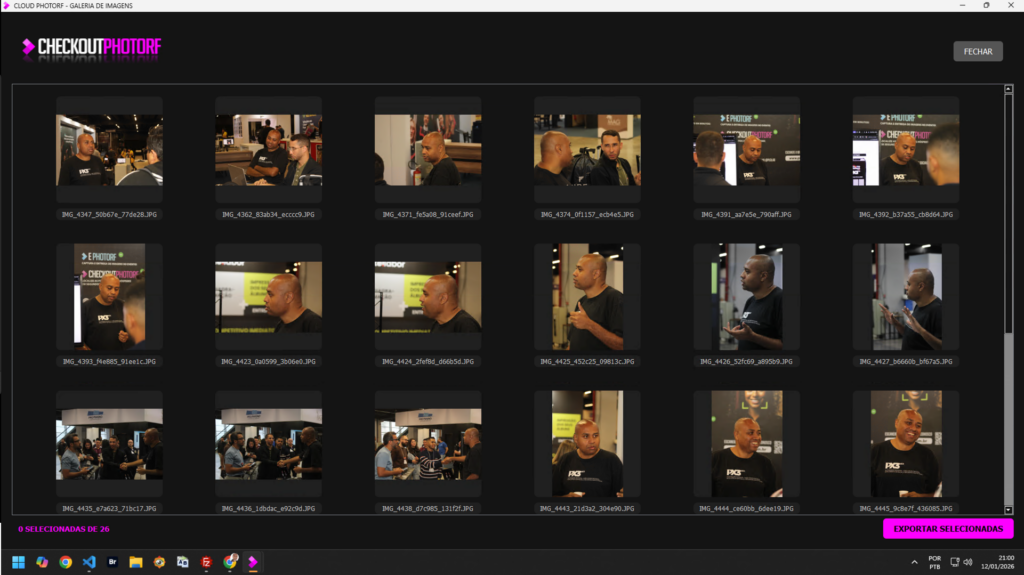 O cliente pode tirar uma selfie, enviar uma foto de referência ou ter sua imagem identificada entre as fotos capturadas durante o evento.
