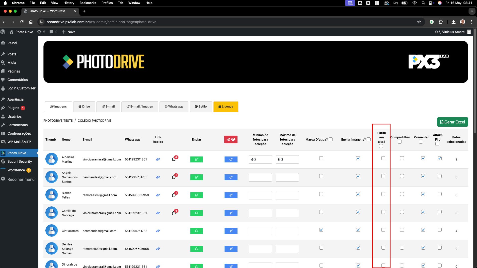 Com o Photo Drive, você define quantas fotos o cliente pode escolher (mínimo e máximo) e ele faz a seleção com poucos cliques.